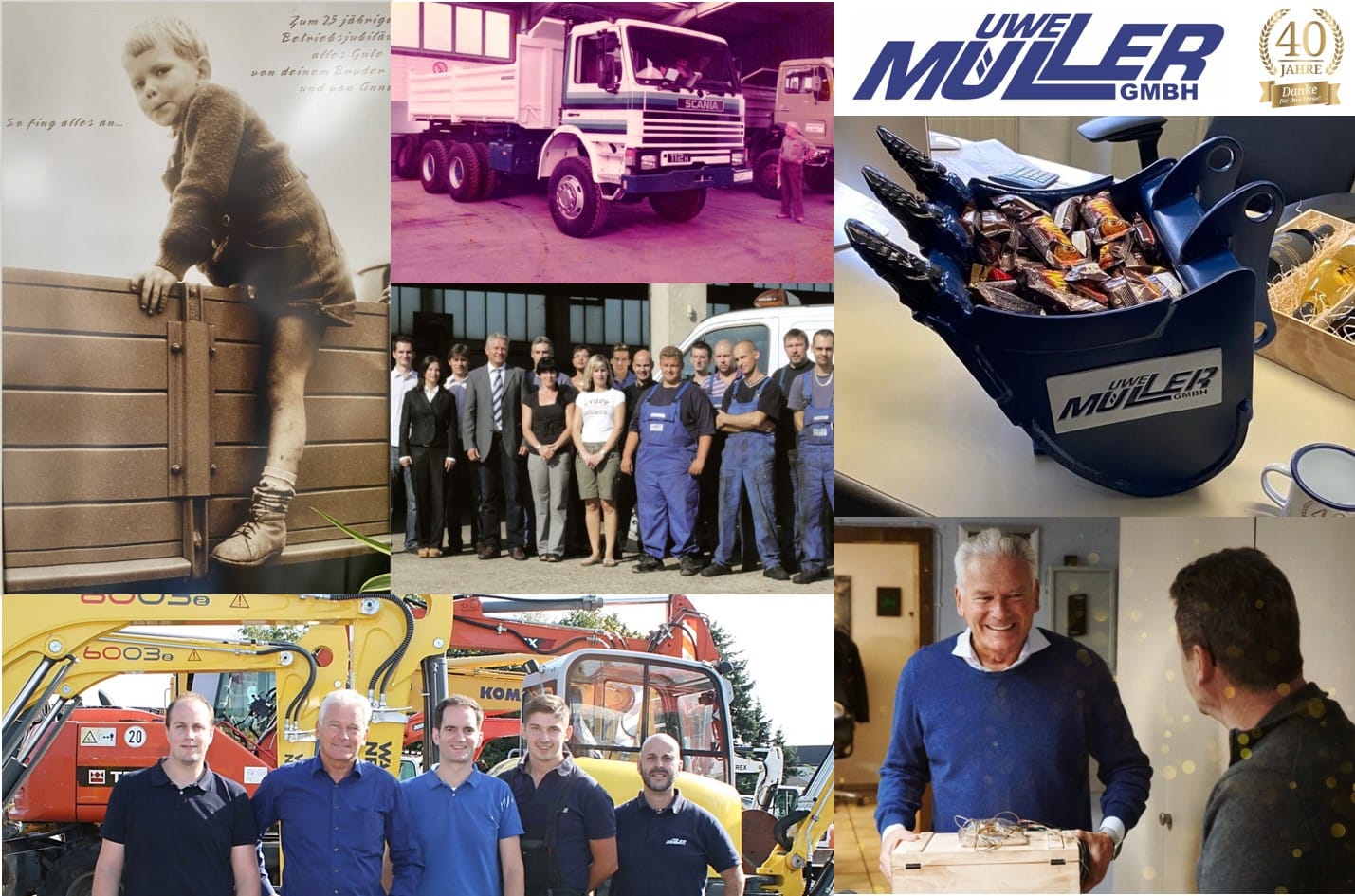 Der 30. Oktober 1980 markiert den Geburtstag der Uwe Müller GmbH. Damals als Werkstatt für Baumaschinen und Nutzfahrzeuge gegründet, sind wir mittlerweile im Baumaschinenhandel sowie der -Vermietung aktiv und erfolgreich. Bis nach Dubai oder sogar die Malediven exportieren wir unsere Maschinen. 1984 wurde unsere freie Werkstatt Scania-Vertragspartner, fünf Jahre später wechselte sie zu Mitsubishi Lkw, heute als Fuso Lkw bekannt.