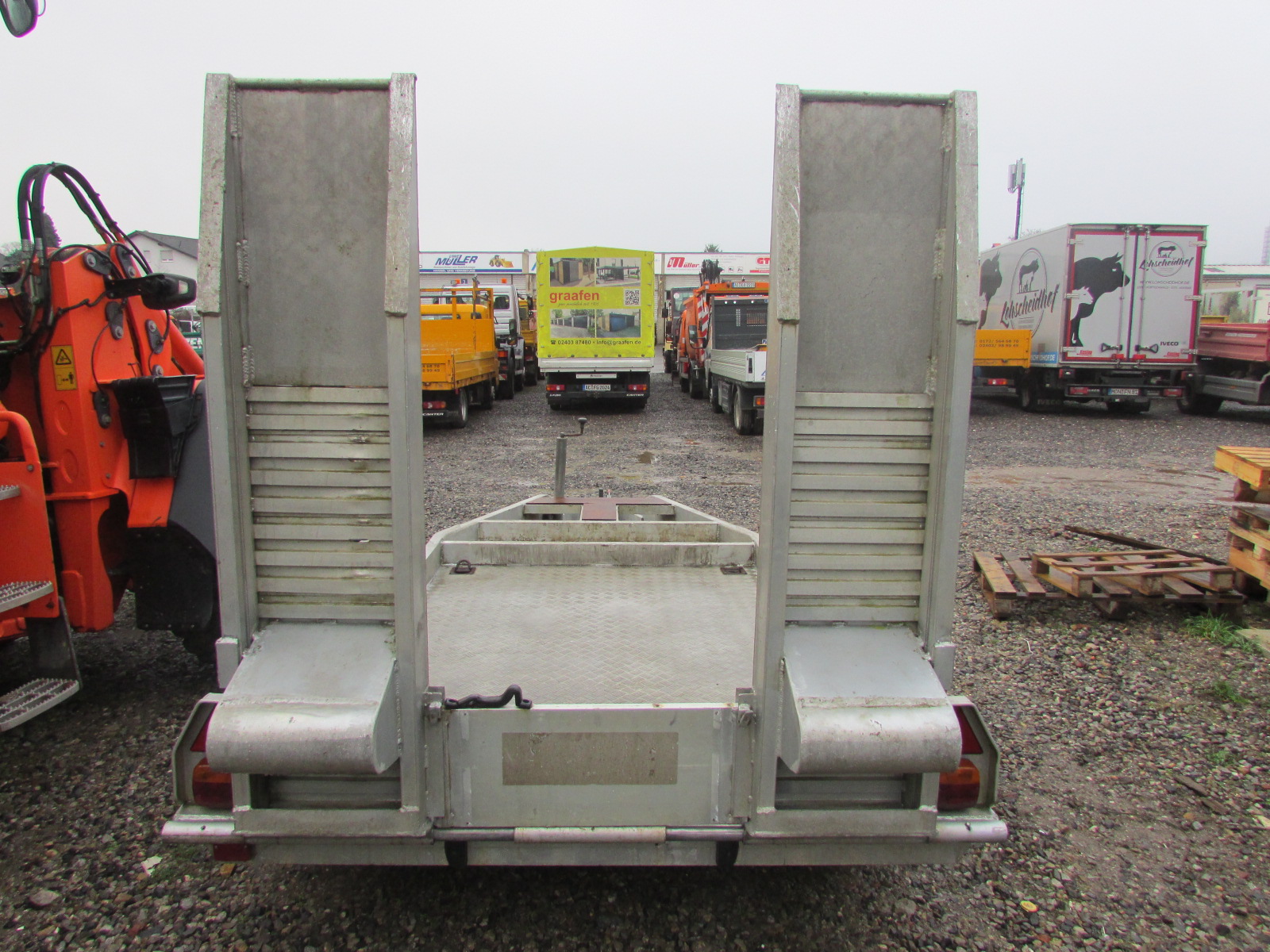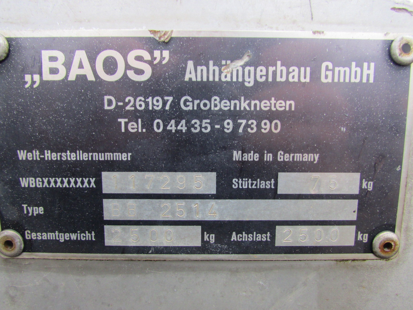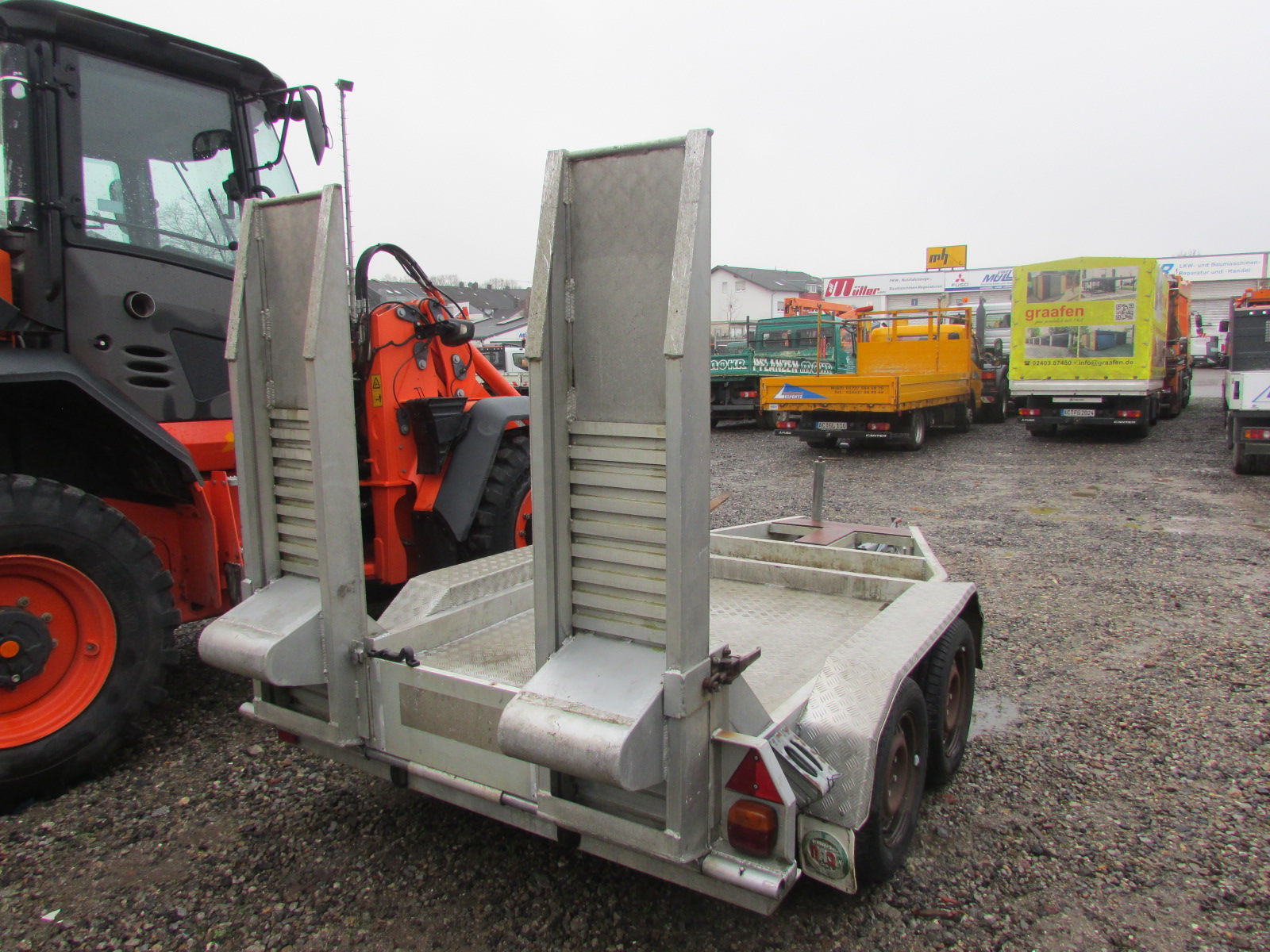 Baos BB 2514 Baumaschinenanhänger EZ 04/2000, Gesamtgewicht 2500 kg, Nutzlast 2080 kg, Anhänger für Baumaschinentransporte, 2 Rampen, TÜV 10/2026, Löffelablage, Innenmaß 2,10 m x 1,45 m