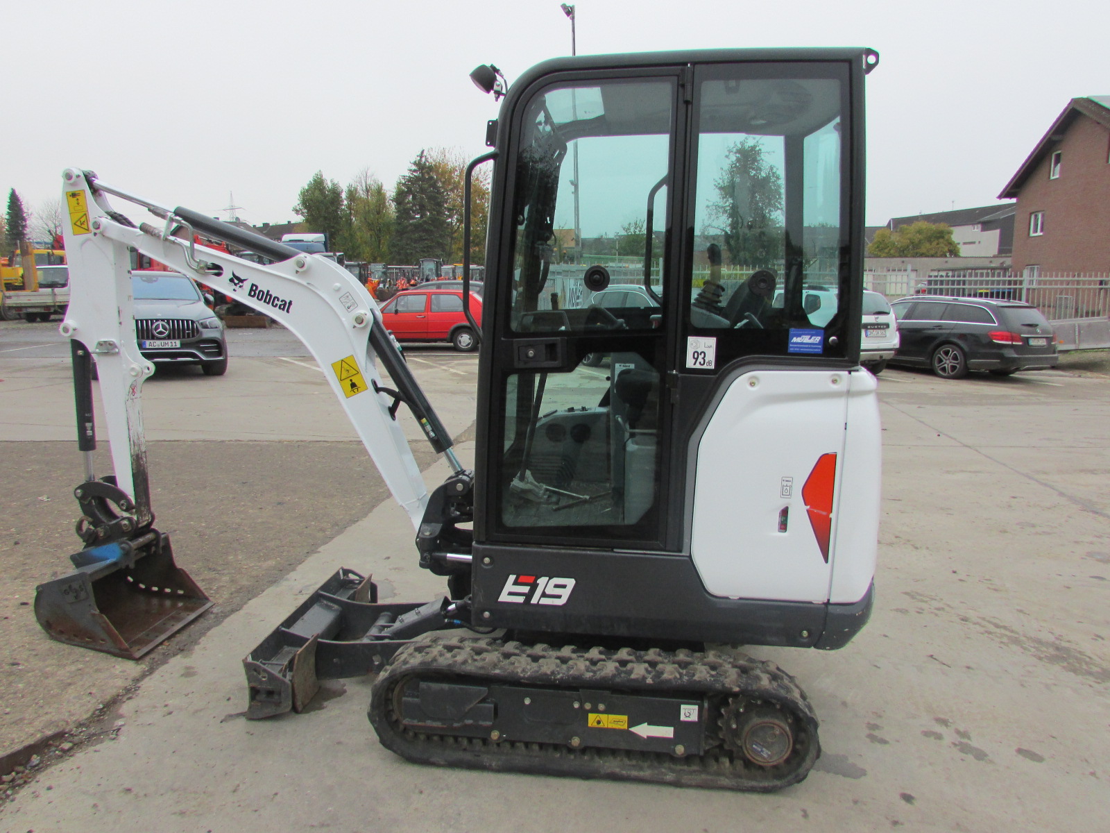 Bobcat E 19 Baujahr 2023, 325 h, Betriebsgewicht 1885 kg, Schnellwechsler Lehnhoff MS 01, 1 Tieflöffel, hydraulische Zusatzleitung, Proportionalsteuerung, Motorleistung 10,2 kW, Verstellfahrwerk, Arbeitsscheinwerfer
