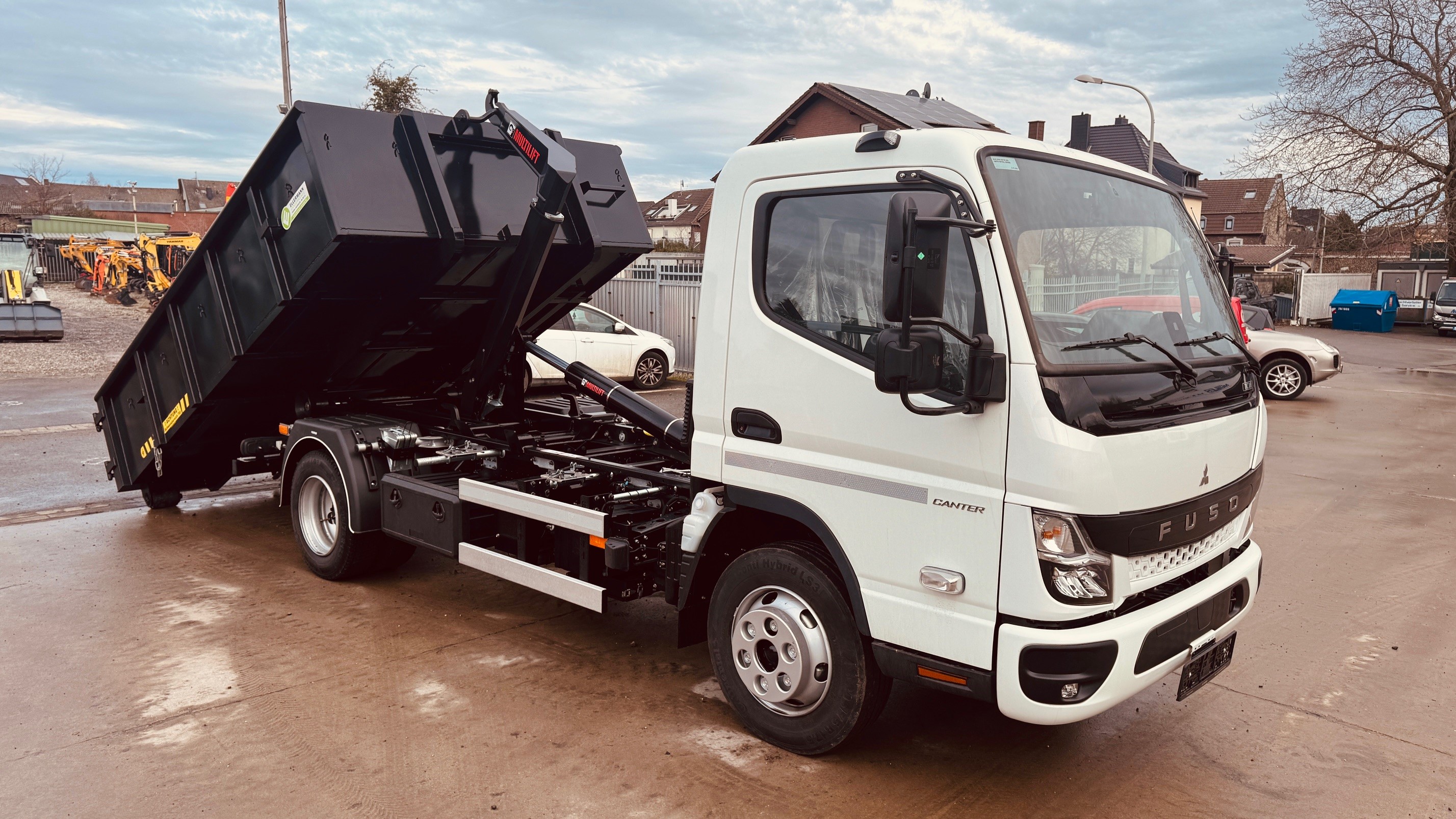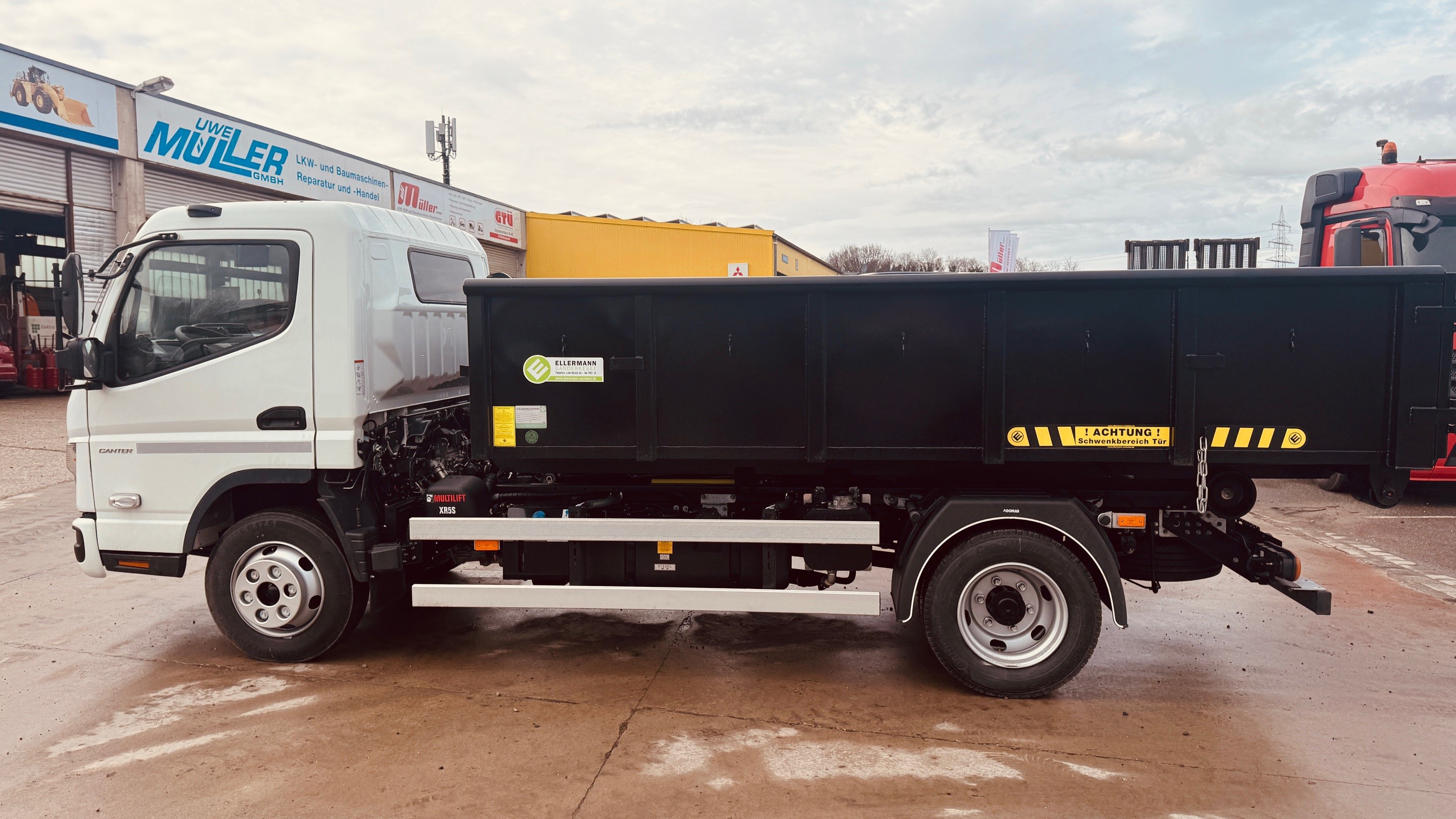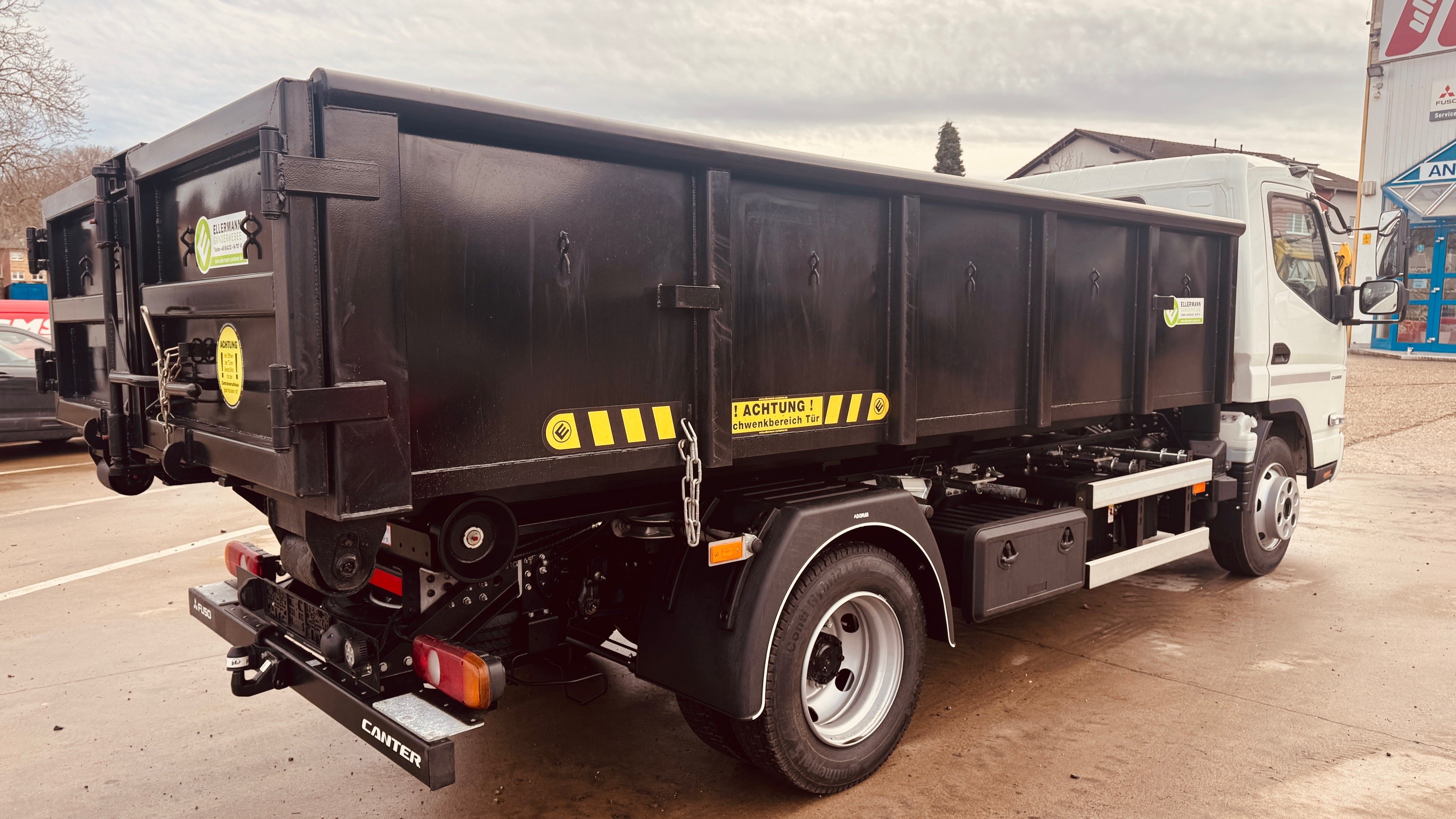 Fuso Canter 7 C 18 Abrollkipper mit HIAB Multilift XR 5 S Abrollkipper der 5 t. Klasse inkl. 1 Container - Abmessungen 4000 x 2000 x 750 mm Klimaautomatik Differentialsperre an der Hinterachse