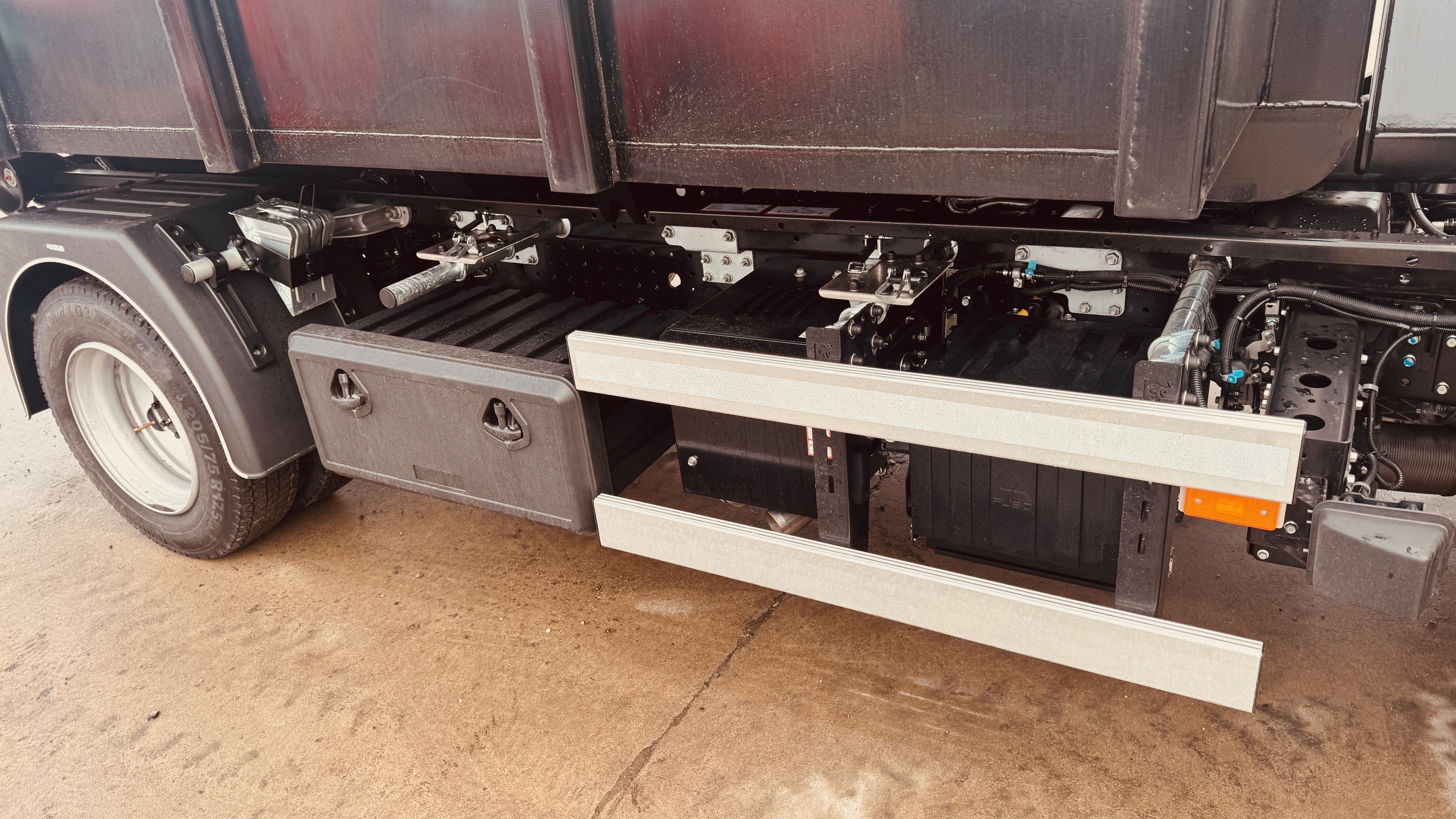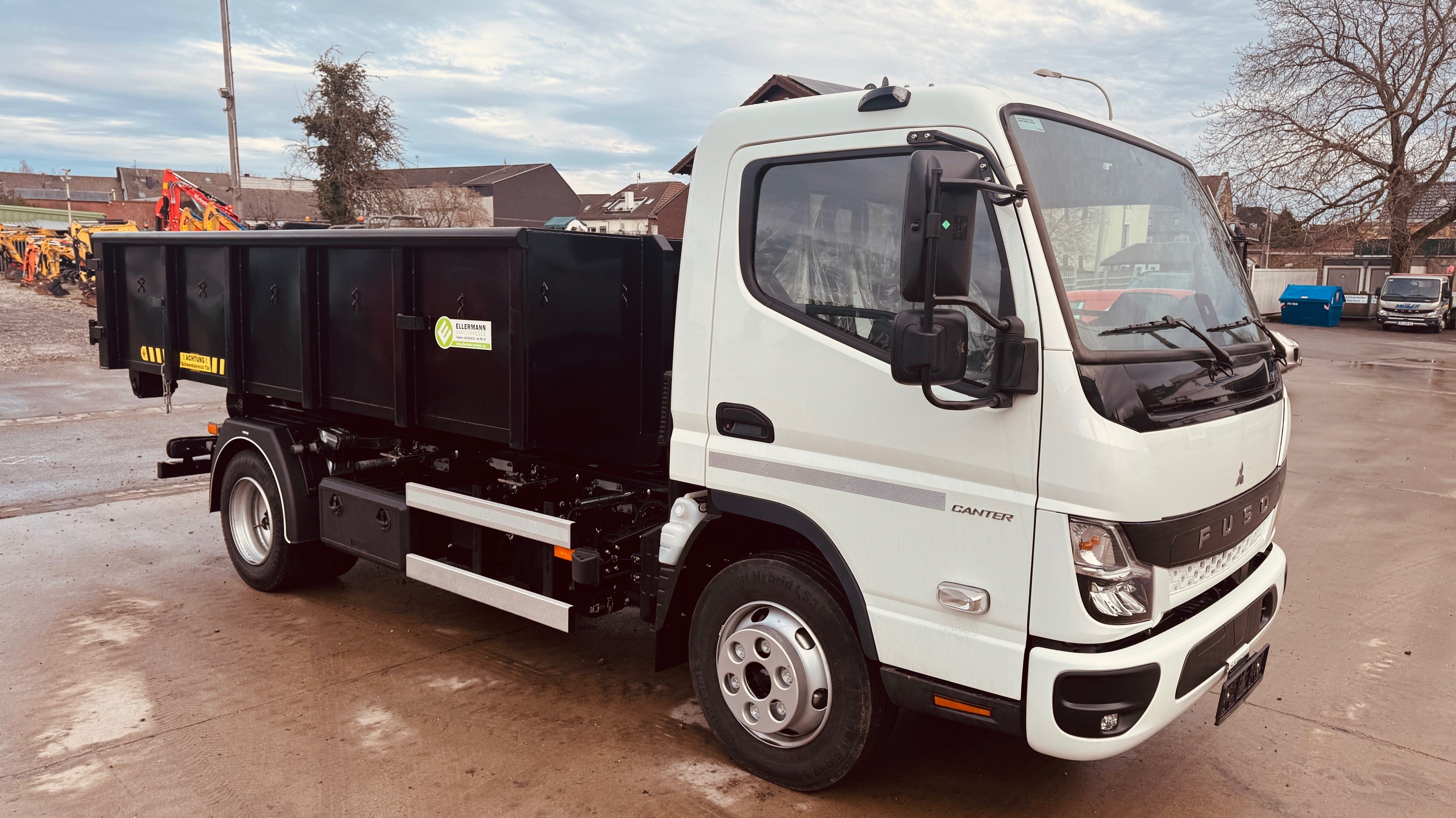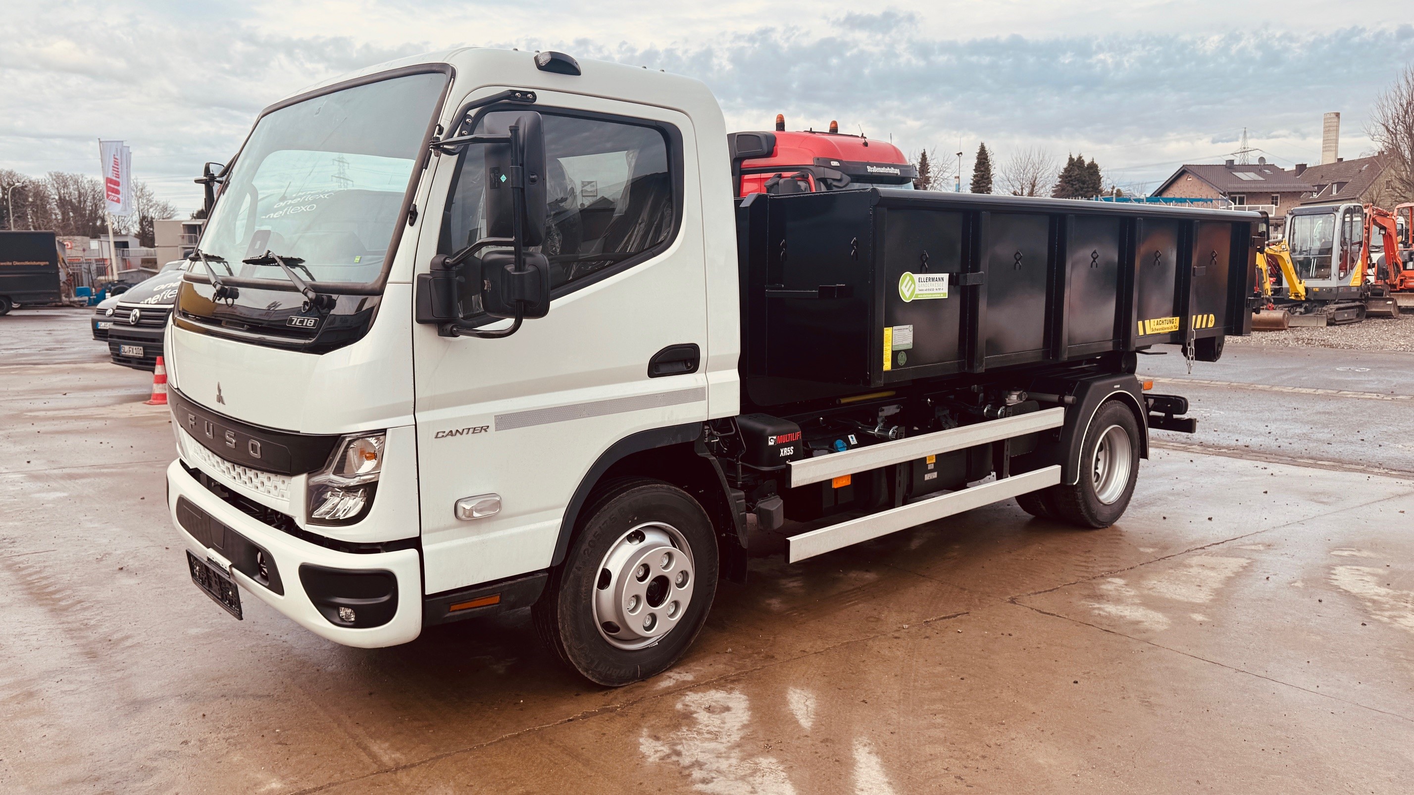 Fuso Canter 7 C 18 Abrollkipper mit HIAB Multilift XR 5 S Abrollkipper der 5 t. Klasse inkl. 1 Container - Abmessungen 4000 x 2000 x 750 mm Klimaautomatik Differentialsperre an der Hinterachse