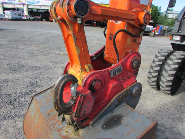 Hitachi ZX 140 W-3 Baujahr 2011, 4810 h, Betriebsgewicht 16500 kg, Verstellausleger, Schnellwechsler Lehnhoff HS 10, 90,2 kW, Hammer- und Greiferleitung, Lasthaken, Rückfahrkamera, Klimaanlage, Sitzheizung, Schildabstützung, Arbeitsscheinwerfer, 1 Löffel, Reifen 90 %