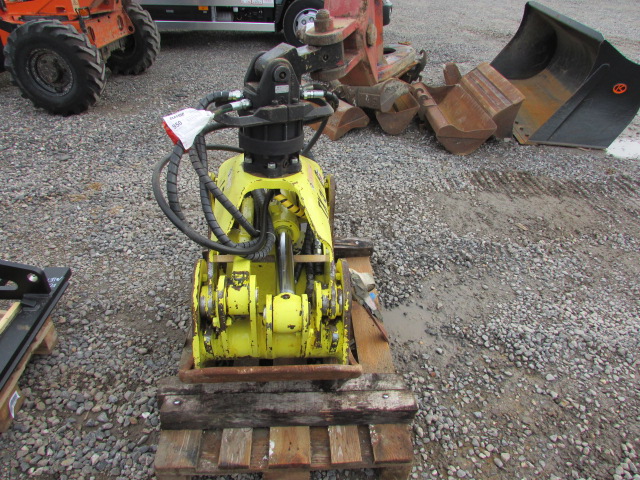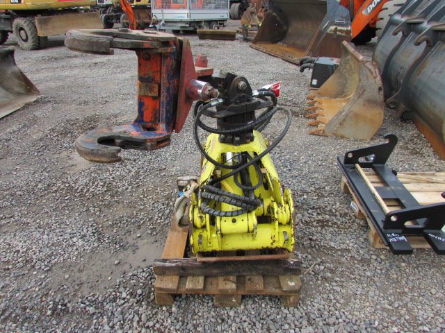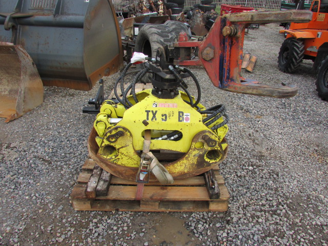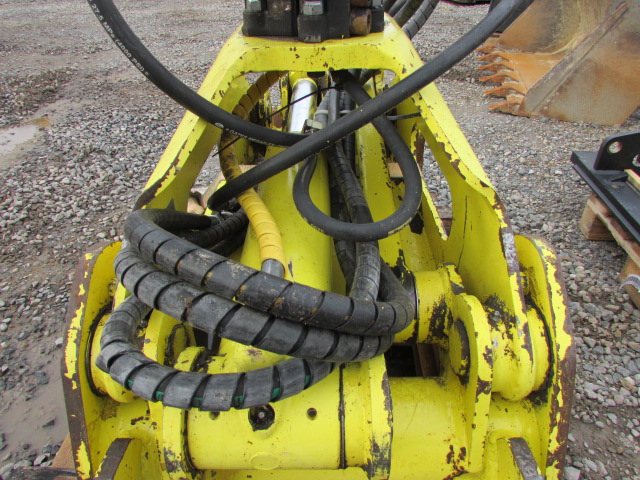 Holzgreifer Hiab Loglift TX 56 B Gewicht 345 kg, gelb, max. Belastung 9000 kg, Backenkraft 21,7 kN, Greifbereich 1975 mm, Backenbreite 558 mm, Aufnahme Atlas T 630 (SMP), Aufnahme für Kettenbagger und Mobilbagger