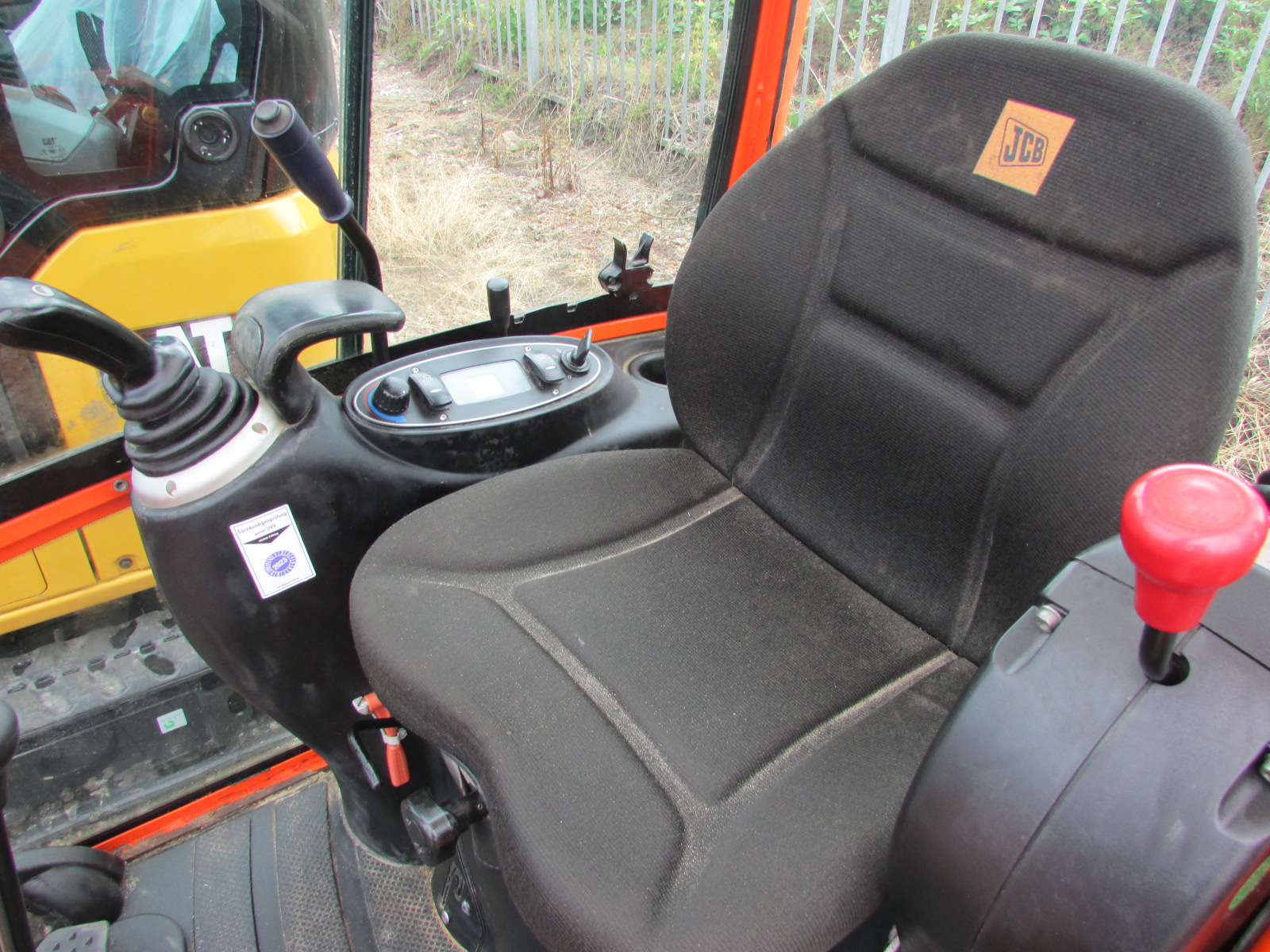 JCB 8018 CTS Baujahr 2013, 1340 h, Betriebsgewicht 1822 kg, 14,7 kW, Schnellwechsler Verachtert CW 05, 1 Tieflöffel, Lasthaken, Verstellfahrwerk, Arbeitsscheinwerfer, hydraulische Zusatzleitung