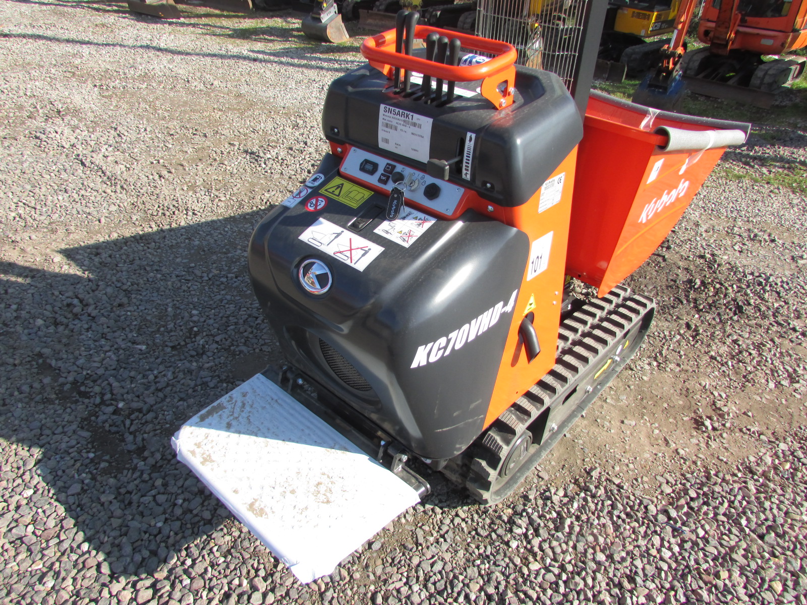 Kubota KC 70 VHD-4 Hochkipper Baujahr 2023, Neu, Betriebsgewicht 740 kg, Nutzlast 550 kg, Motorleistung 7 kW, Kubota Diesel Motor, Hochkippmulde, Schnellgang, Elektro Start, 0,34 m³ Inhalt, Breite 758 mm – 1058 mm, Verstellfahrwerk, einklappbares Trittbrett, Schaufeldrehpunkt 1,43 m