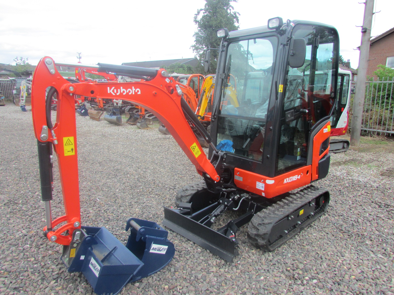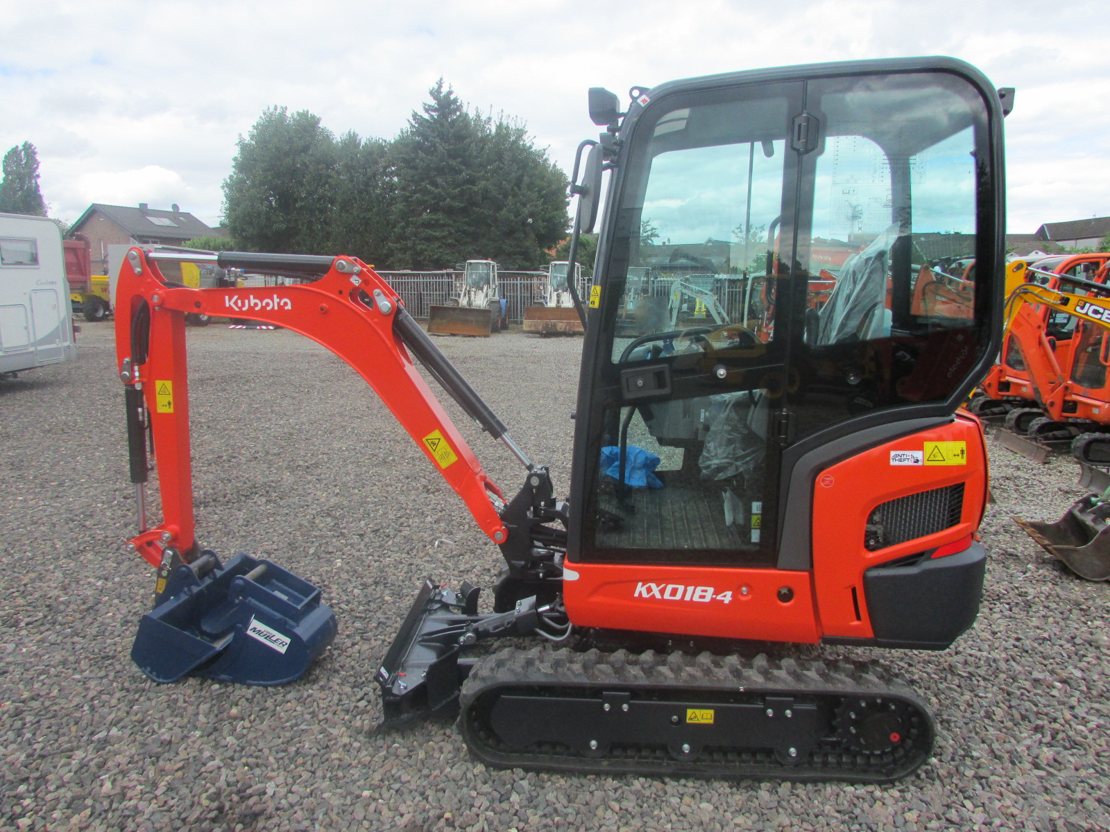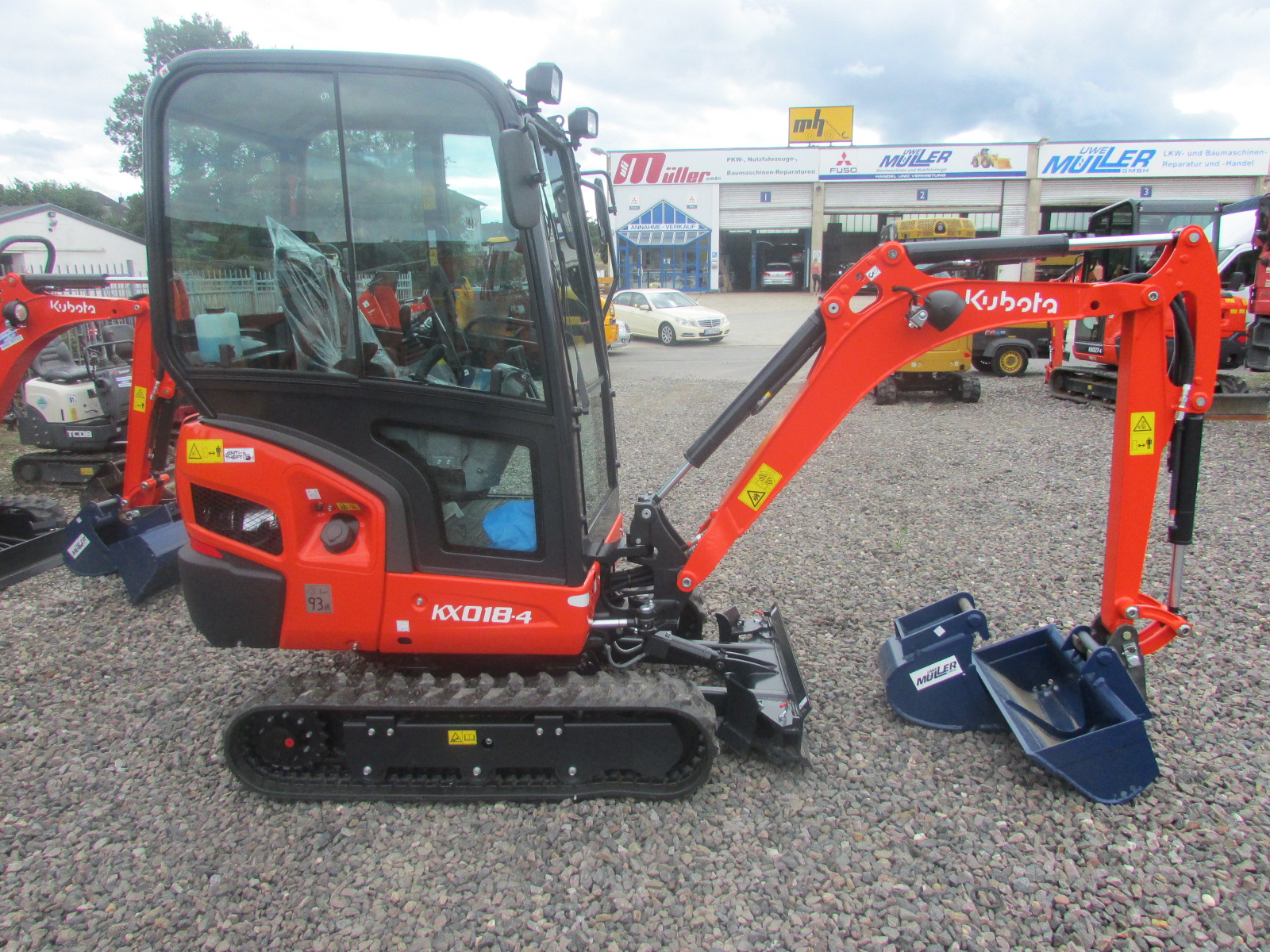 Kubota KX 018-4 Baujahr 2023, Betriebsgewicht 1795 kg, 11,6 kW, hydraulische Zusatzleitung, Schnellgang, Verstellfahrwerk, Gummikette, Arbeitsscheinwerfer, Radiovorbereitung, Werksgarantie, Schnellwechsler Lehnhoff MS 01, 1 Tieflöffel, 1 Grabenräumlöffel starr