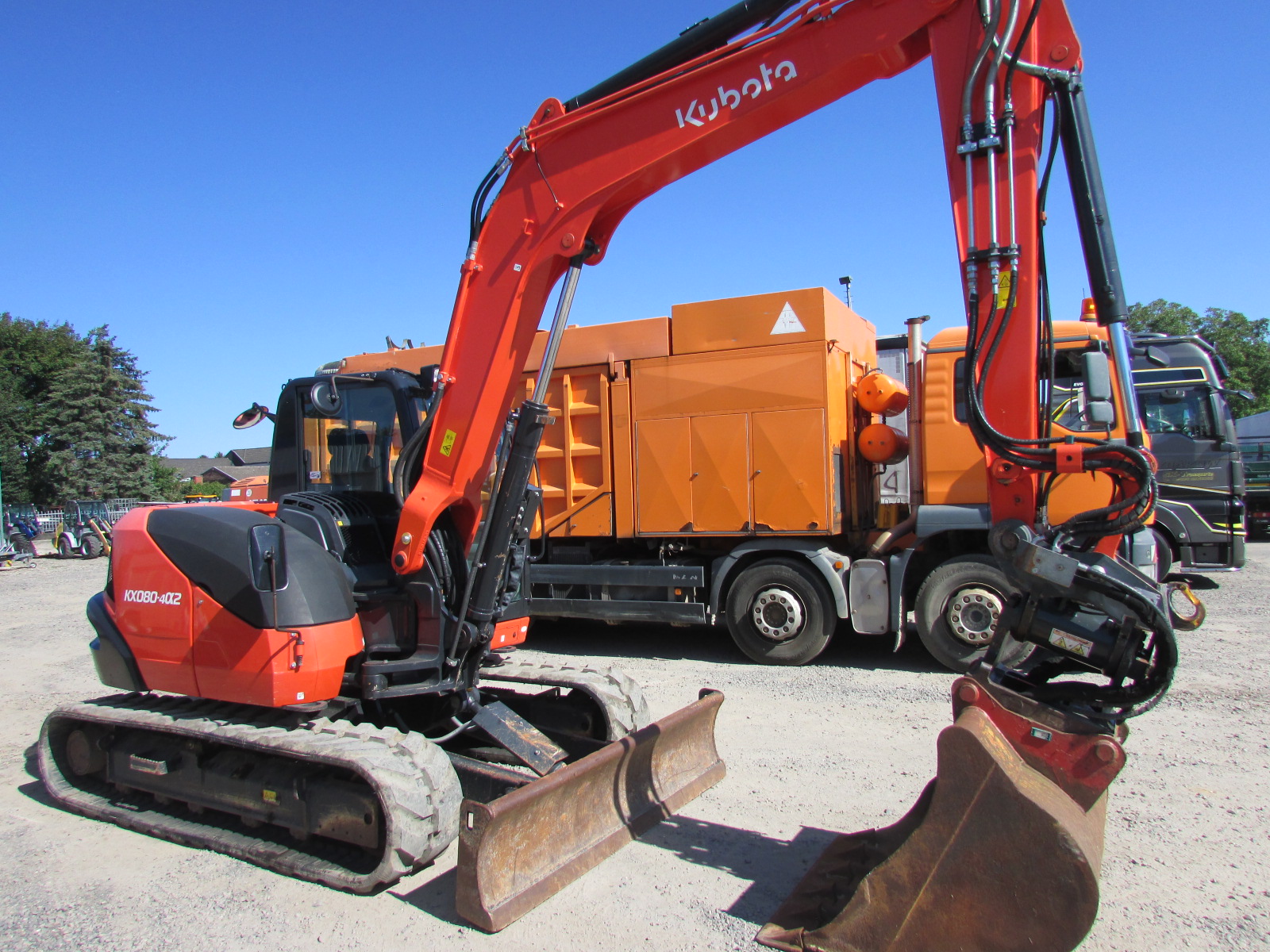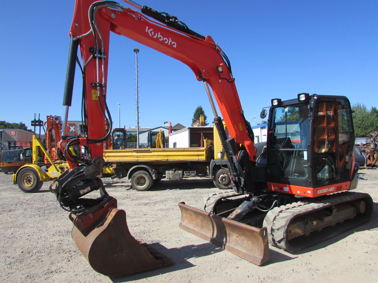 Baujahr 2021, 1630 h, Betriebsgewicht 8440 kg, Motorleistung 46,5 kW, Powertilt mit vollhydraulischem Schnellwechsler Oil Quick OQ 60-5, Lasthaken, 1 Tieflöffel, Monoausleger, Aux 1 + Aux 2 , 2 x Proportionalsteuerung, Klimaanlage, Radio, neue Gummiketten