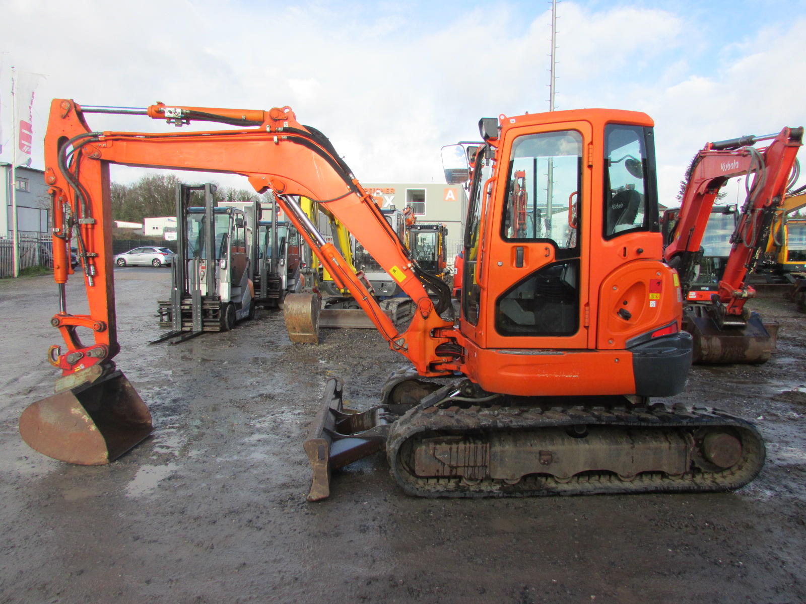 Kubota U 55-4 HI Baujahr 2015, 3060 h, Betriebsgewicht 5400 kg, Motorleistung 33,8 kW, Kurzheck, hydraulischer Schnellwechsler Lehnhoff HS 03, 1 Tieflöffel, Aux 1 + Aux 2, 2 x Proportionalsteuerung, Klimaanlage