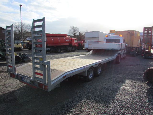 Baujahr 2019, Kilometerstand 2913 Km, Motor 519 CDI, 6 Zylinder, 190 PS, 6-Gang Schaltgetriebe Eco Gear, 4x2 Hinterradantrieb, Emissionsklasse EUR VI, Rundumkennleuchte, Klimaanlage, Navigation, MBUX Multimediasystem mit 7 Zoll Touchscreen, Tachograf digital EG mit Downloadfähigkeit, Multifunktionslenkrad, Spurhalteassistent, Lederausstattung, Pritschenaufsatz 2,30 m x 2,10 m, Aluminium Bordwände Höhe 30 cm, Kugelkopfkupplung, Druckluftanlage, Sattelzugmaschine der Firma Veldhuizen mit Sattelplatte, Gesamtgewicht 12000 kg, Nutzlast 7600 kg, Begrenzungsleuchten, Kurbelstützen, Luftanschlüsse, Semi-Tieflader ca. 8,50 m x 2,20 m, 12 Zurrpunkte, Finanzierung möglich ab 1,99 %