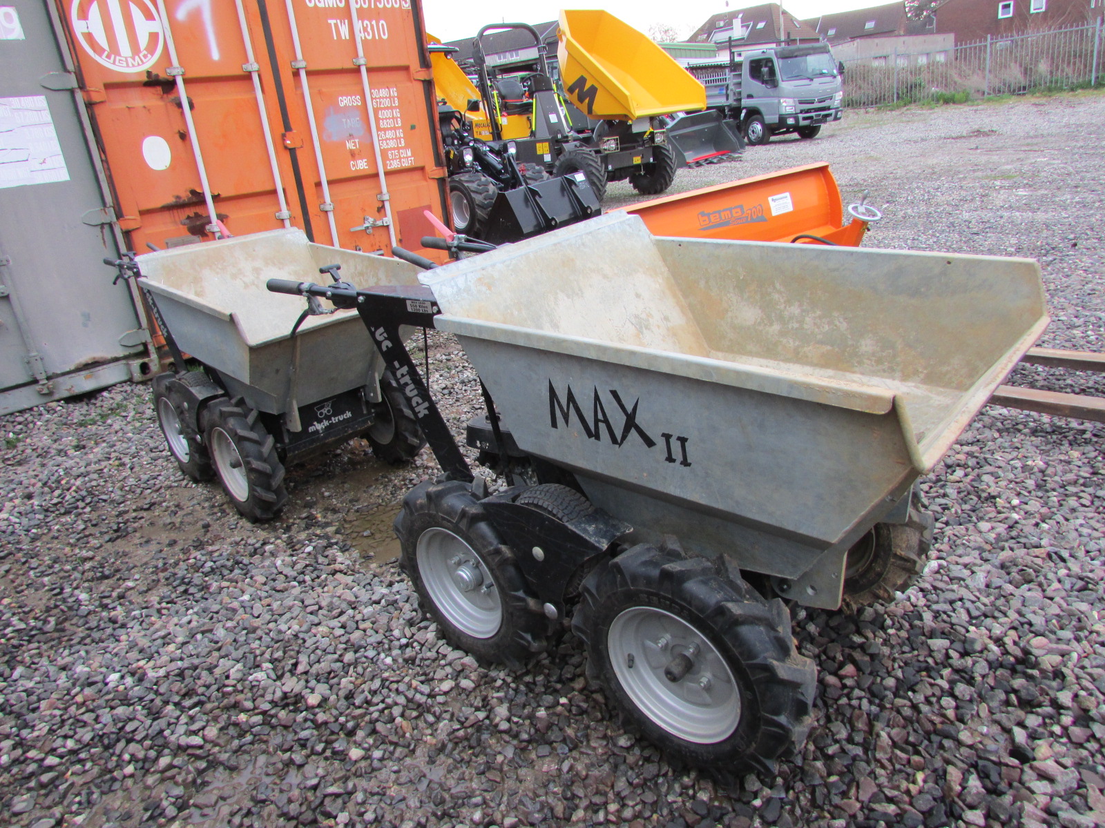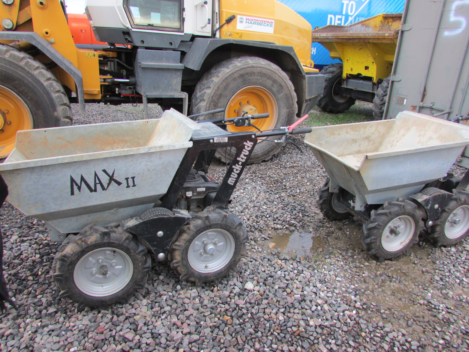 Muck-Truck Max II Minidumper Baujahr 2019, permanent 4-Rad angetriebener Minidumper, Nutzlast 550 kg, Eigengewicht: 144 kg, Breite: 711 mm, Kippmulde mit 0,2 m³, Motor Honda GXV Benzinmotor mit 4 kW Leistung, Reifen 90%, sehr guter Zustand, wenige Einsätze nur bisher, 2x vorhanden, Zwischenverkauf und Irrtümer vorbehalten