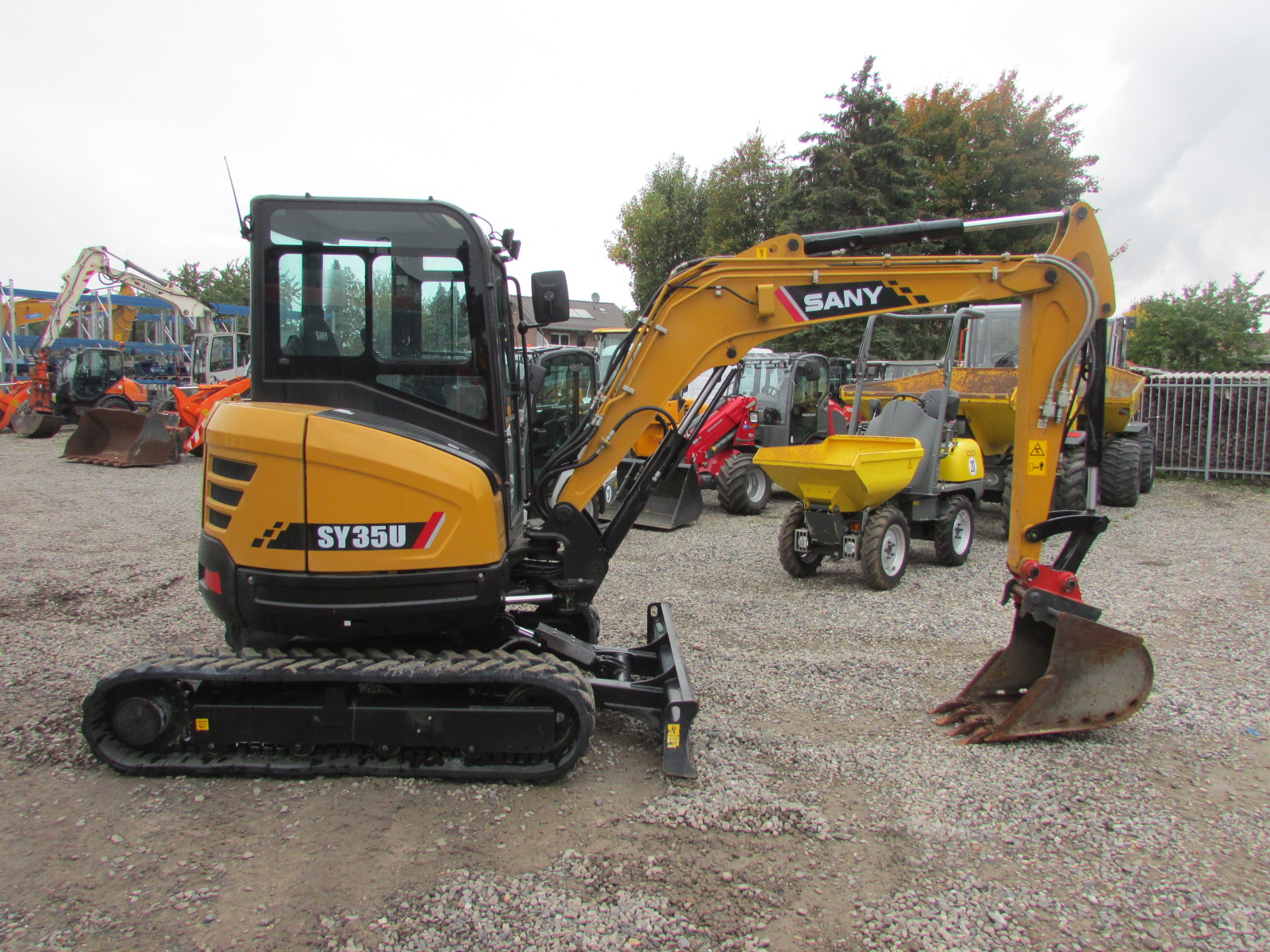 SANY SY 35 U Baujahr 2023, 196 h, Betriebsgewicht 3860 kg, Motorleistung 18,2 kW, Schnellwechsler Lehnhoff MS 03, 1 Tieflöffel, Aux 1 + Aux 2, 2 x Proportionalsteuerung, Kurzheck, LED Arbeitsscheinwerfer, Radio, Klimaanlage