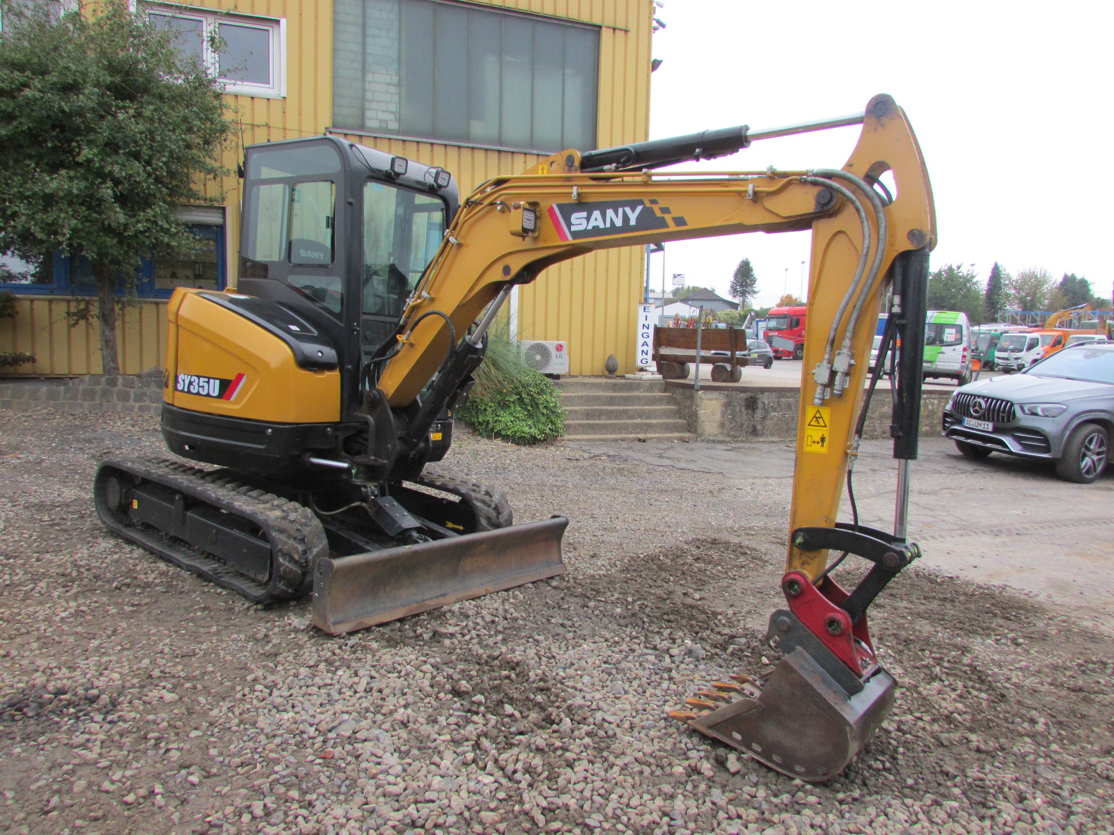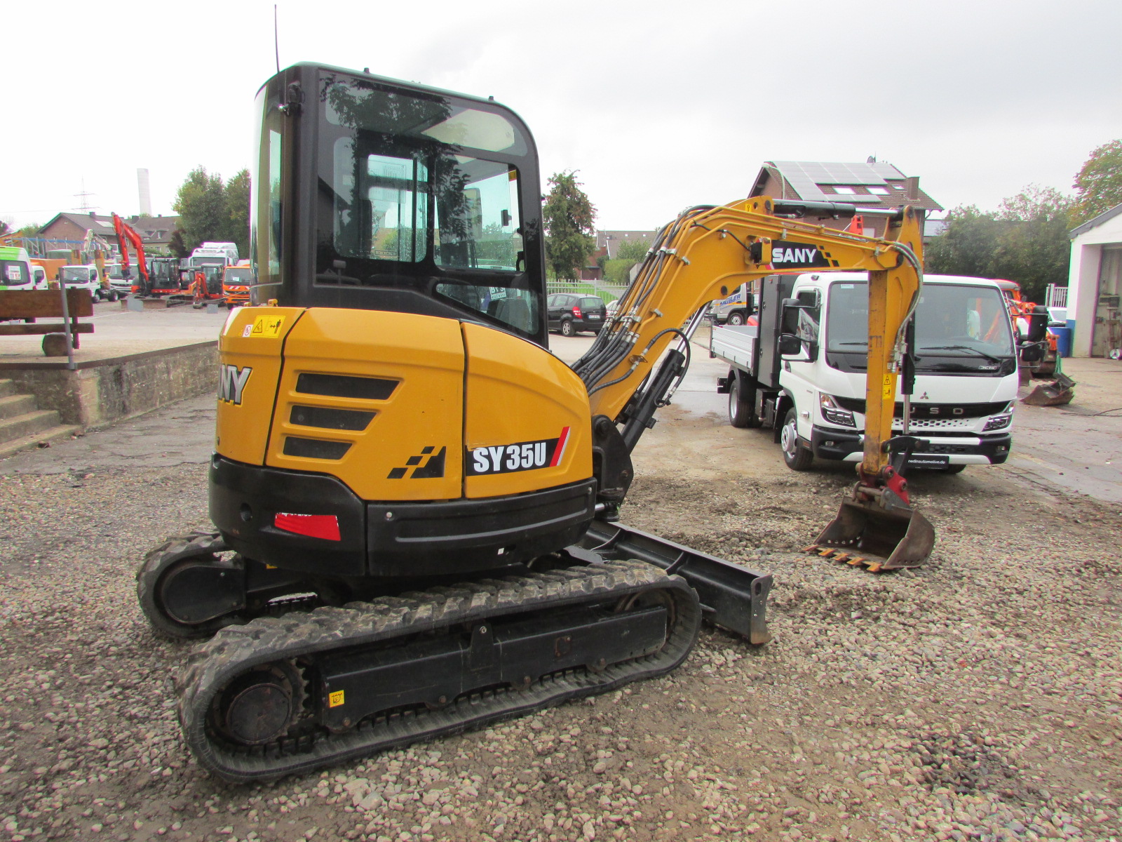 SANY SY 35 U Baujahr 2023, 622 h, Betriebsgewicht 3860 kg, Motorleistung 18,2 kW, hydraulischer Schnellwechsler Lehnhoff HS 03, 1 Tieflöffel, Aux 1 + Aux 2, 2 x Proportionalsteuerung, Kurzheck, LED Arbeitsscheinwerfer, Radio, Klimaanlage