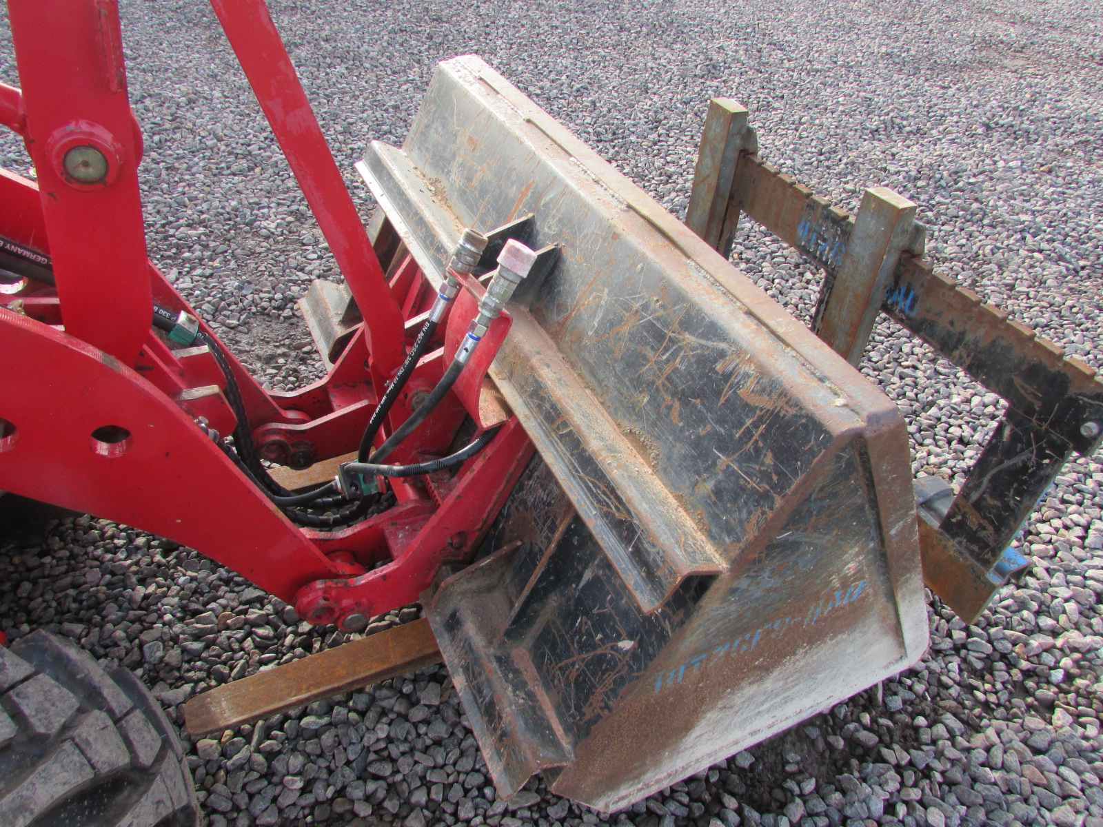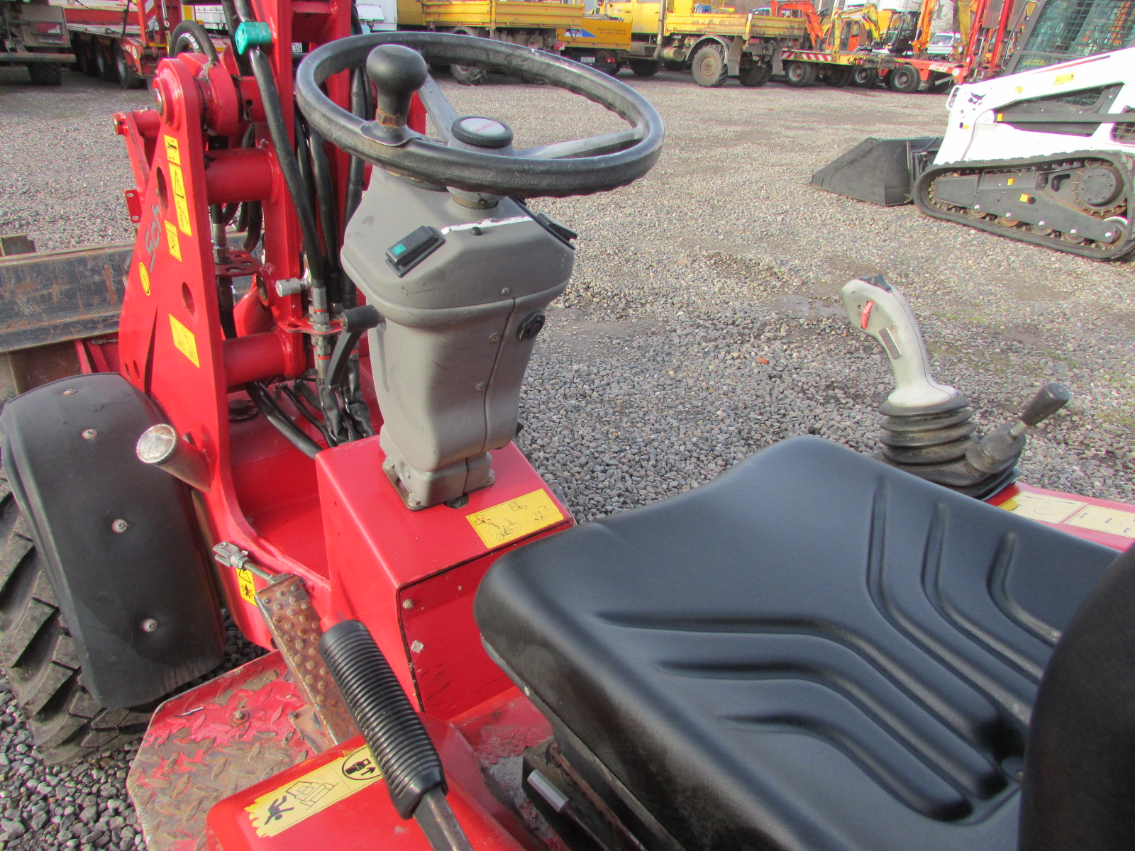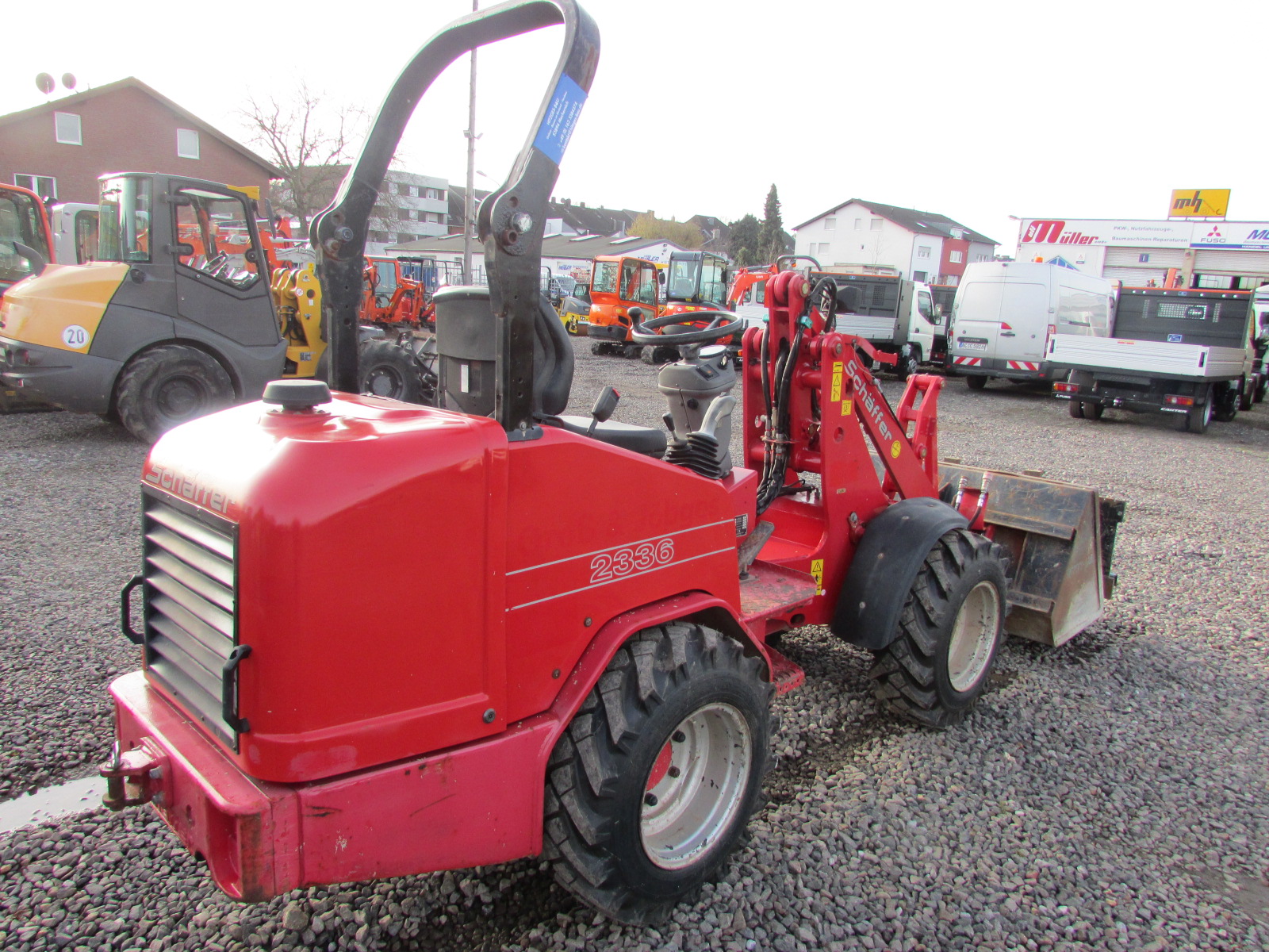 Schäffer 2336 Baujahr 2010. 2640 h, Betriebsgewicht 2200 kg, Motorleistung 26 kW, Arbeitsscheinwerfer, hydraulischer Schnellwechsler, Palettengabel, Schaufel, ROPS / Schutzbügel, 3. Steuerkreis, 4 neue Reifen, Hubkraft ca. 1700 kg